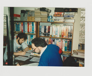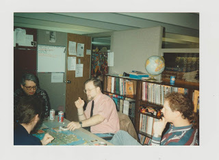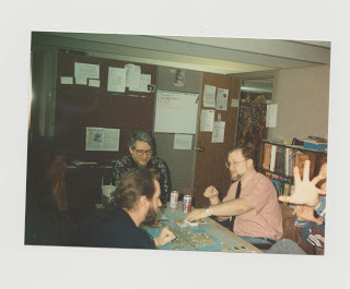 So, recently I came across some pictures of gamers gaming that I thought I'd share. These were taken in the old Games Library in the TSR building sometime between October 1991, when I came on board, and December 1996, when I walked the plank. Since no one appears in them who came on in 1995-96, my guess is they date from '93-'94.*