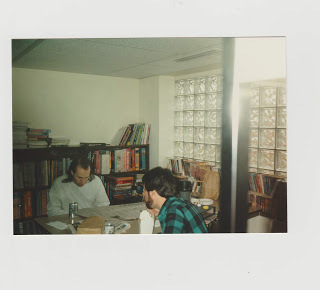 Photo #1, right to left: Bruce Heard, Jon Pickens, Thomas Reid. For the obscured figure to the right, see photo #4 below. In the background between Bruce and Jon is the infamous Whiteboard.