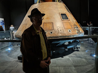 Here's a picture of me next to the Apollo 11 command module, the only part to reach the moon and return (as opposed to the lunar module, which stayed behind on the surface of the moon, and the service module, which burned up in the atmosphere during landing). It's surprisingly large when you see it and yet surprisingly small when you think of fitting three men inside.
