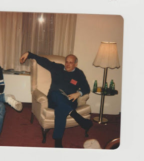 So, here's a photo of Jared in congenial surroundings, either in the Green Room at the 1983 Marquette Tolkien Conference (assuming that conf. had a Green Room, which I'm not sure about) or in his suite in Mashuda Hall at the 1987 Marquette Tolkien Conference/MythCon.