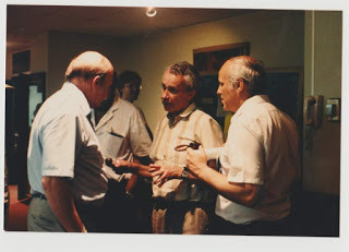 So, here's a picture of Jared from the 1987 Marquette Tolkien Conference/MythCon in Milwaukee. Jared is on the right, talking with Christopher Tolkien (center) and I believe Charles Huttar (left); I can't identify the figure in the background.
