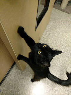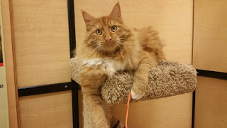 Avery was moody, although I think glad to be back in the big cage now that Bosco's adoption had freed that up again. She spent most of the morning in the outer room, keeping an eye on the other cats and occasionally joining in a game. She had a good walk over in the training room, purring all the time. Her fur’s finally grown out, just a beautiful as expected. Think maybe she needs more one-on-one attention.