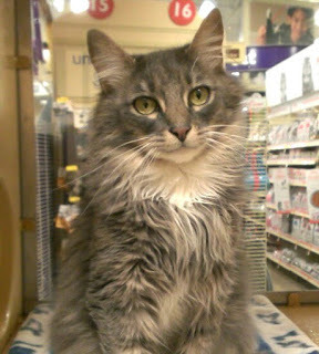 Tonks was adorable. Into everything: wanting to climb in every cabinet, play with every toy, ride on your shoulder, and see if whatever you’re doing is a good game. She had a good walk, especially when she discovered the end-cap with catnip toys: she thought it was a great idea to have them all at her level where she cd sniff each in turn. She wanted to play with everybody, but nobody wanted to play with her except me. What a great little cat.