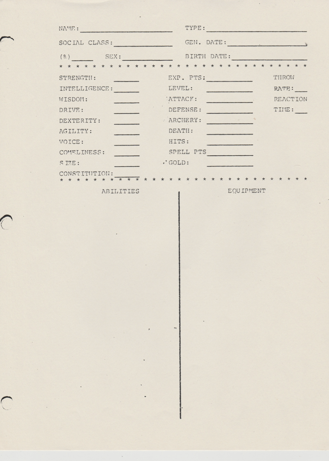 An Old Character Sheet