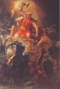 Alviss was indeed a smarty-pants, and managed to wax enthusiastically and at length about the worlds he’d visited. Thor and the lovelorn dwarf yakked all night about this, that and the other thing. Just before dawn, Thor was forced to admit he’d never seen a wiser soul.
