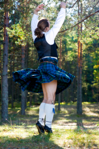 Finish it off with a stylish buckle on your belt, a good quality sporran, a skean dhu peeking out from a sock (a dirk, only allowed for ceremonial purposes!) and a fetching kilt pin.