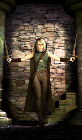 Today's Fantasy Friday photo is a provocative 3d illustration of a awesome and styling warrior woman who can wield two swords…the better to skewer you with? Is she coming down those stairs to rescue someone she loves or to seek revenge?