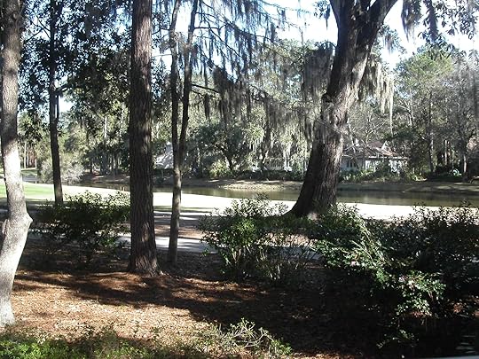 My stories are often inspired by magical places. This photo is of the lagoon outside my window. Quite frequently I see alligators swimming around, looking for lunch. Often, the alligators lay on the grass surrounding the lagoon in order to sun themselves. They are fascinating to watch…from afar. I enjoy the look of the hanging moss and the texture of the tree bark. To me, it's very romantic and moody. Exotic, colorful birds also come to visit the lagoon, to nest in the trees or to fish. Inspiration can spring from many things. What inspires you?