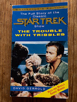 Two additional thoughts. First, this particular edition includes a plate section of black-and-white photographs that is really odd. Two of the photos are from The Trouble with Tribbles itself, and there are a few from other episodes of the time and of cast members more generally. But there are also some pictures of cast members out of character - William Shatner seen with his wife, Leonard Nimoy seen with his wife and with his son. There are then photos from the movies Star Trek V, Star Trek VI, the casts of spin-off series The Next Generation and Deep Space Nine, and a picture of the USS Voyager - none of which get mentioned in the text. I suppose the intention was to make the book appeal to fans of contemporary Star Trek in 1996, but I think they might have felt a little short-changed. It's odd, because David wrote a new introduction to this edition but doesn't mention his work on the first Star Trek movie (in which he briefly appears) or as a writer on The Next Generation. There's no mention of that year's Deep Space Nine episode Trials and Tribble-ations (in which he again cameos), with which this edition was surely meant to coincide. I wonder what happened - and will ask David the next time we meet.