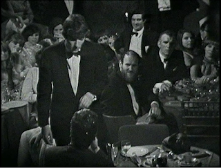 Back to David. On 5 March 1969, he was one of the hosts of the Writers' Guild awards held at the Dorchester Hotel in London. The moment that he announced the plaque for 'Best British Light Entertainment Script' awarded to the writing team behind Marty [Feldman] was captured on film and opens the surviving documentary One Pair Of Eyes: No, But Seriously, first broadcast on 7 June. It's the second surviving example of David's voice and you can currently view this on YouTube, but also here is a screenshot: