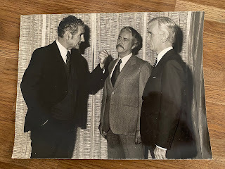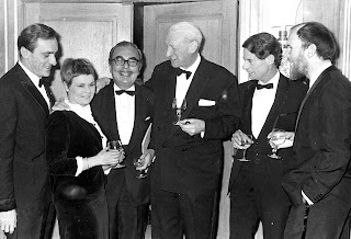 In the middle of the picture are (in glasses) Sydney Newman, leaving his job as BBC Head of Drama after five years, and beside him tall Donald Wilson, Newman's former head of serials. These two men created Doctor Who and I'm not aware of any other photograph of them together.