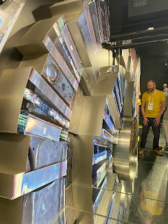 I've returned home with pages and pages of notes in my notebook - bits of new ideas, lists of things to read or look into, random bits of detail. For example, one thing that boggled my brain was that work on constructing the CMS detector (one of a number of detection instruments located round the Large Hadron Collider) was delayed by the discover of Roman ruins on site which then had to be painstakingly excavated. I'm taken by the Nigel Kneale-ish thought of ancient ghosts being picked up by the sensitive detectors...