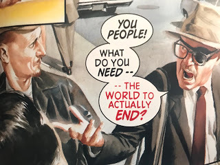 Or there's the moment he turns on the population of New York for their (and his own) fickleness, praying for salvation in times on crisis and then turning on the superheroes the moment danger has passed. What with everything at the moment, the following panel struck a chord: