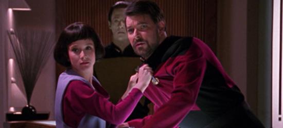 This is, then, a return to the moral debate in 2.9 The Measure of Man, which was clearly not settled in the finding of the tribunal. In that episode, the discomfort was felt by Data’s crewmates while Data - for all he protested his rights - was unaffected emotionally. Here, though, Lal is a victim, made so anxious by her predicament that she seeks help from the ship’s counsellor. “I feel it,” she tells Troi. Troi, I think, she be the one to defend Lal to the authorities, reminding the admiral that feelings matter in this version of the Enterprise. Sadly, she doesn’t get a chance.