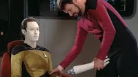 Yet Data then has to explain his objections to his captain (and friend) before Picard attempts to help him. When Picard goes to see Louvois, she also struggles to understand the problem: when Picard says that Data has rights, she responds, “All of this passion over a machine.” If this were a standalone drama, we might sympathise with that view but we’re 35 episodes into the series and we know and like Data - largely, I think, because actor Brent Spiner is so charismatic even playing a man with no emotions.