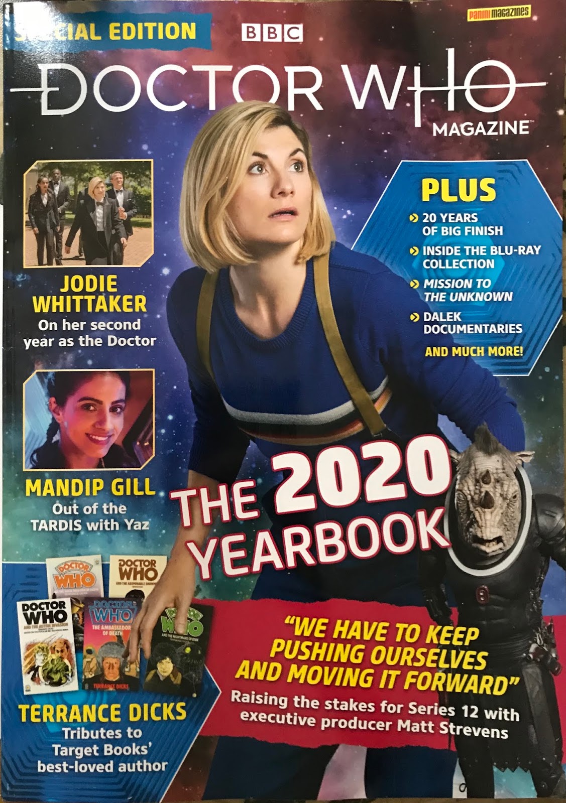 2020 YearbookDoctor Who Magazine's 2020 Yearbook is now out, with exclusive access to the cast and crew of the new series plus Nick Setchfield's moving tribute to writer Terrance Dicks, speaking to Terrance's widow Elsa and former editor Brenda Gardner.