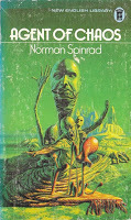 "Fortunately, the crazy fanatics seem to be as incompetent as Johnson's boobs." (p. 57)I'm not sure Spinrad means Johnson so be anything less than a hero. On page 124, Johnson is a babbling fool who can't articulate why he fights for demoracy. Then, oddly, the narrator speaks up for him.