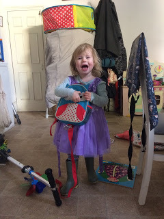As Ray and I were talking on the phone about the practicalties of the Doctor's new costume, Lady Vader (or "Pting" as her brother now calls her) took it all to heart. Soon she was insisting I zip up her favourite princess outfit which she wore with owl backpack and wellington boots. The interview over, I then had to take her out for adventures, splashing in puddles while looking 100%.