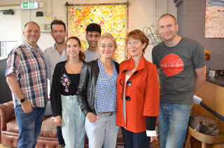 Sophie, Celia and Simon at Fitzrovia PostOur cast includes Celia Imrie (Best Exotic Marigold Hotel, Nanny McPhee, Calendar Girls, Phantom Menace, Bridget Jones Diary) and Sophie Thompson (Four Weddings and a Funeral, Gosford Park, Harry Potter), joining Harry Myers and new, young talent, Rosie and Jai.
