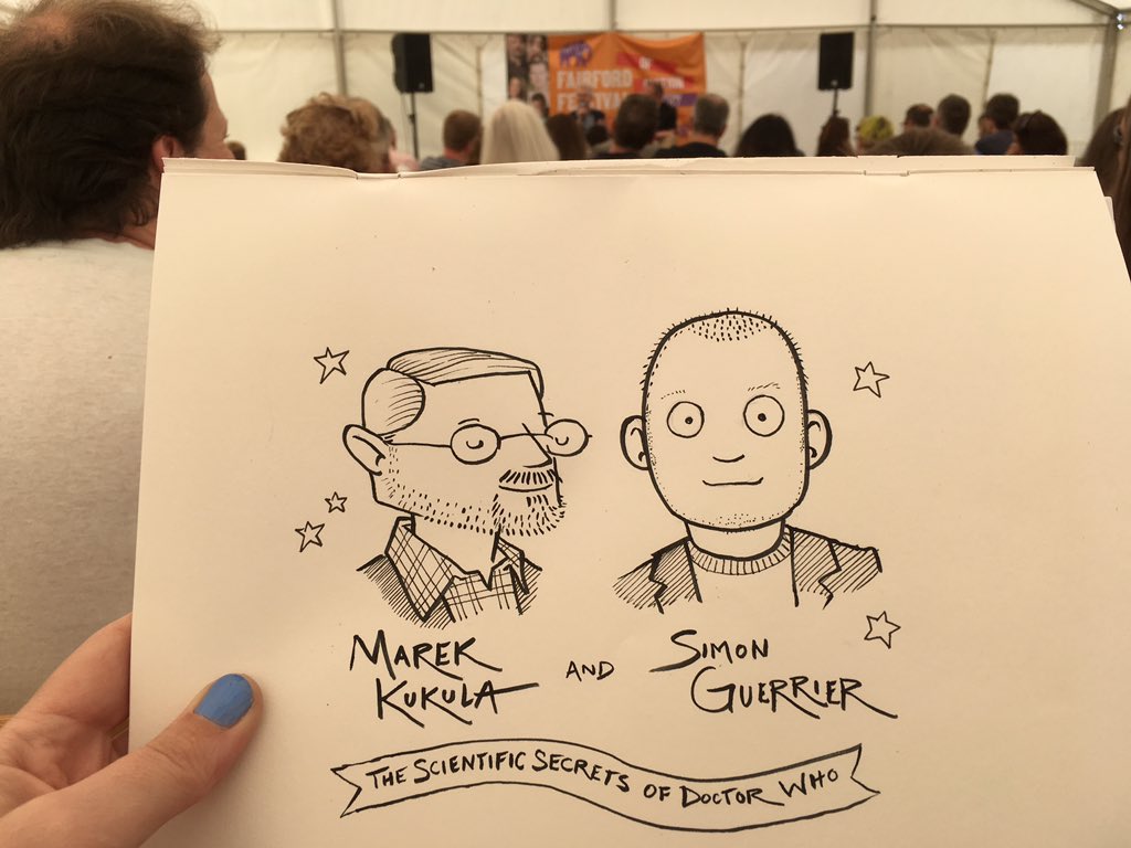 Then Marek Kukula and I did our spiel on the Scientific Secrets of Doctor Who - and Sarah McIntyre sketched us looking especially clever.