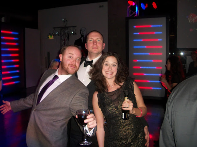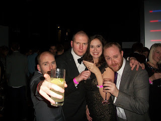 Then it was out again into the ticket hall for booze and schmoozing and perhaps even some dance moves. I got to meet a bunch of the other directors, and said hello to Big Finish's own Lisa Greenwood who - showbizly - I'd last seen in LA, Joe Millson and Andrew and Hannah off of Primeval . I think I spotted Nina Toussaint-White from Let's Kill Hitler there, too, so it was quite a high-scoring night.