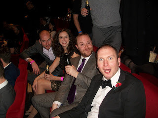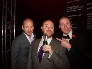 Me, Adrian Mackinder and Mrs Tom had special pink VIP tickets for the evening do (which I think meant we had to queue longer than the people with bog ordinary tickets, but anyway). We were given nice booklets with interviews with each of the shortlisted directors, including Tom doing his best impression of Sir Roger Moore: