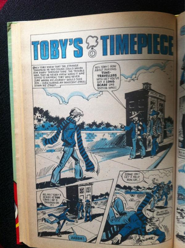 "'This is it', says Chris. He tells us about his 'really good dream' last night. 'I was in Dr Who and the drawings on the carpets were satanic messages. It had chases and everything.'"David Bryher reminds me of this one (which nicks from descriptions of the fourth and fifth Doctors in the works of the all-mighty Terrance Dicks):
