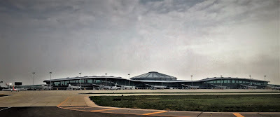 On my last morning, I got up at 5:30 and had a breakfast of fried rice with egg, vegetables, steamed dumplings, tea and juice. Having finished packing, I took a taxi to the airport. The trip through mostly empty highways took some 45 minutes. The airport is truly beautiful but it, too, was virtually empty. I was the only passenger at that early hour checking into the Air China flight to Beijing. At the check-in counter, I was greeted by one of the pale blue volunteers who helped me to get my boarding pass and directed me to the beautiful lounge where a hostess in a silk uniform with a miniskirt welcomed me. I again was the only customer, until three Chinese fellow travelers entered and ended my peaceful reverie.