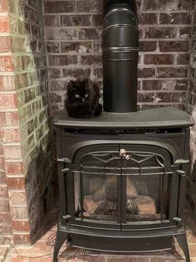 As you can see, KC The Cat, age 17, clearly does not want raccoons in front of her fireplace.