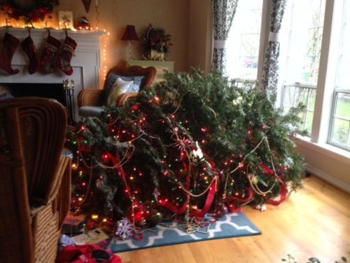 I don’t know why we have two gold stars on our slightly tilting Christmas tree, but at least the tree is up.