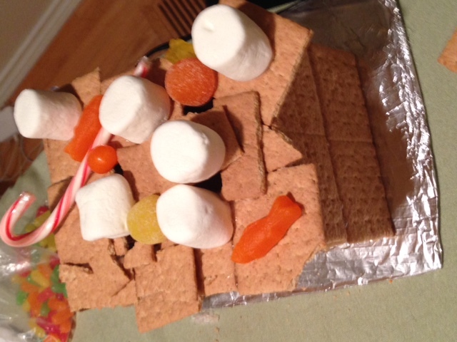 Every year we make Christmas houses with graham crackers and glue guns. They never turn out normal.