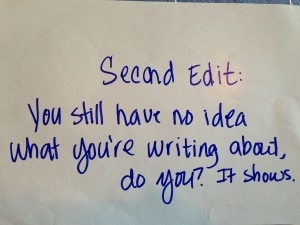 I thought you might be interested in the things I say to myself after my first draft and succeeding edits.
