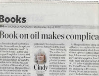 After my divorce, when I moved to Victoria Texas, I happened to meet the op-ed editor at the local newspaper. He was speaking at an organization meeting and a friend introduced me to him. As a nice friend will do, she told him something about me, namely that I had had (at that time) four novels published by Algonquin Books of Chapel Hill, a publishing house with a great reputation throughout the publishing world. He asked me if I ever did book reviews, and I answered not really, just some reader remarks on Amazon pages. He then asked, "Would you like to? It doesn't pay much but we need another reviewer." And so I said yes. He then invited me to come to his office at the newspaper, have my picture taken, and look over the books that were stacked on a shelf there waiting to be reviewed. He told me that once I had reviewed a book, I could keep the book, sell the book, or give it to the library. Gee whiz! What a great proposition for a nutty book person like me.