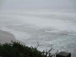 This time, October again because we were spending our "anniversary" there – this time, the weather was horrendous. A howling wind came off the ocean and ravaged the deck on the VRBO we had found online in Old Town. We didn't even venture out at all for one entire day other than to dash across the street to have dinner. We moved all the deck furniture up against a wall to keep it from flying through the picture window. Once the brunt of the storm had passed, on our second whole day, we drove up to see the Sea Lions we had missed on our first trip. The ocean was misty from the crashing waves rolling in. It looked like a scene from a science fiction movie, something from outer space. I could barely keep my fearsome, awestruck eyes off of it. The sea lions, of course, were nowhere to be seen. They're not dummies.