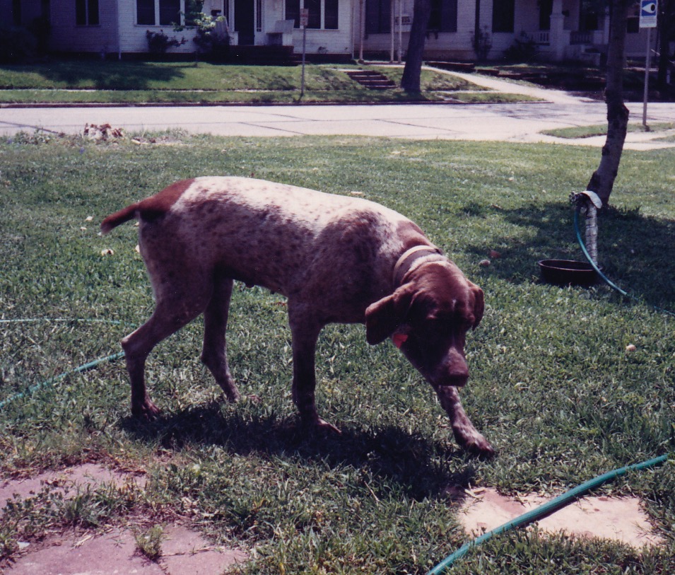 Missy was a hunting dog, the only purebred, registered animal I ever owned. She was sweet-tempered, had a “smart knot” on her head, and so fearless and focused when she got the scent of prey, mostly poor helpless things like tiny cottontails or frogs. She was affectionate, devoted, all the things a family dog should be. We loved her and cared for her -- well, I did that more than the rest. She and I had a special bond. It was me who had to make the decision to end her pain, when she began to develop tumors and stopped eating. I cried so hard I could barely write the check to the vet. When that canceled check came back in the bank statement, there were big tear blots that nearly obliterated my signature. Missy was a month shy of her 12th birthday. I still have her AKC certificate in my keepsake box.