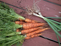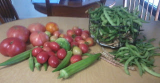 Inevitably, though, no matter how few plants you grow, there comes a time when the harvest overpowers you, when two people cannot possibly eat all the bounty, and there you go, bagging up your overage, trying to find someone willing to do the clean-up required on homegrown produce. Maybe the first time or two, they're appreciative, but all my neighbors are just like us, couples with no kids. We have one bachelor who lives behind us. He never wants more than a handful of any one thing, and by the time I'm in give-away mode I want to get rid of sacks full.