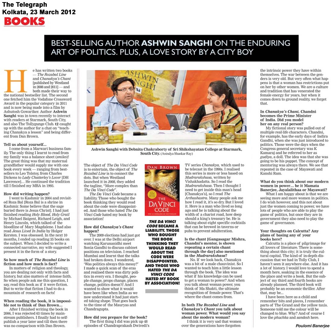 The Telegraph, Kolkata, March 23: Bestselling Author Ashwin Sanghi On The Enduring Art of Politics