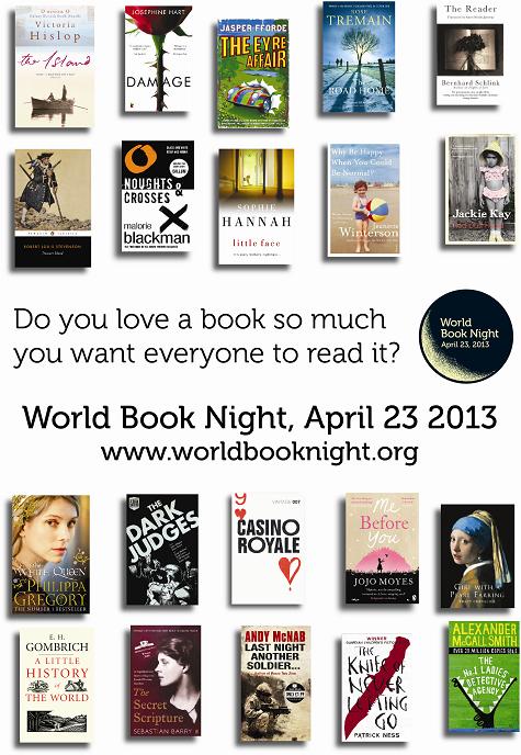Tonight is World Book Night in the UK and Ireland. Below is a short extract from the website set up specifically to promote this event. As a writer and a reader, I want to do what I can to spread the word and help to get people reading, so this is my contribution, small as it is. If you’re a lover of books, writing and reading, please spread the word in any way you feel able.http://www.worldbooknight.org/