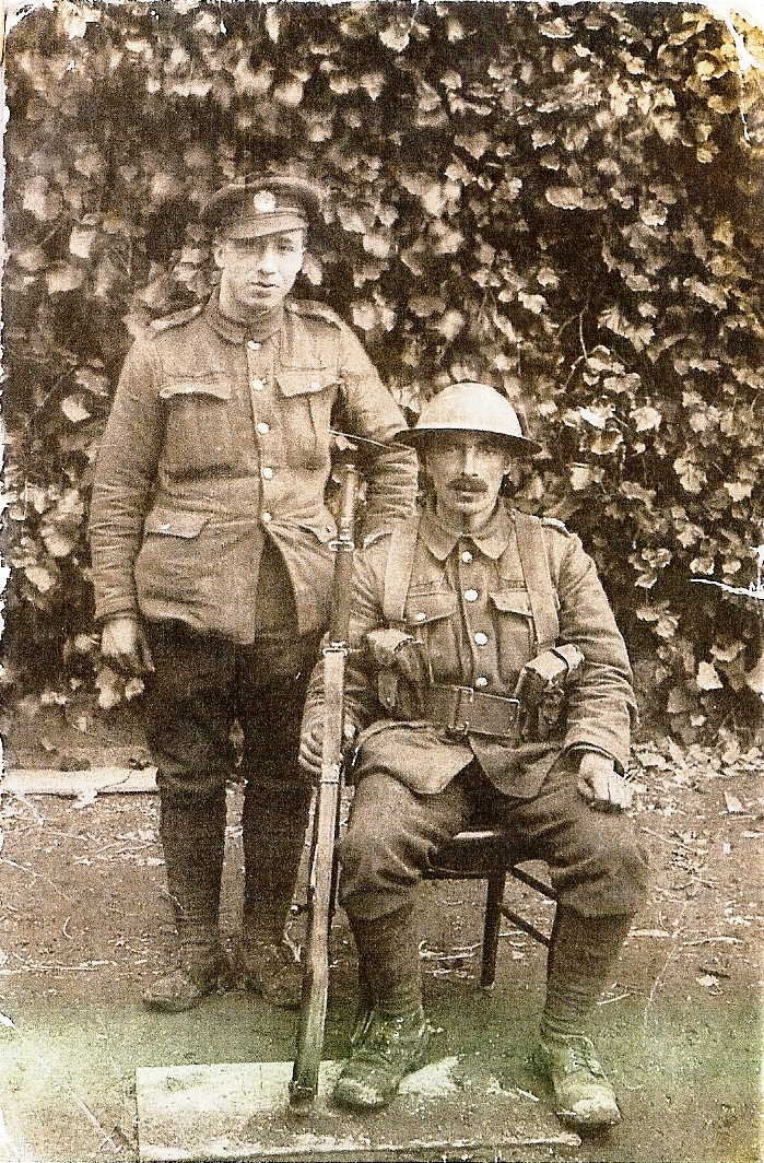 Frederick Burden, seated, with an unknown soldier.Today, 11th November 2012, is Remembrance Sunday, one of those few occasions when Armistice Day actually falls on a Sunday. I’d like to take this opportunity to say something relating to my paternal grandfather, and the trip my wife, Valerie, and I recently took to France in order to see the monument in Arras, where his death is commemorated.