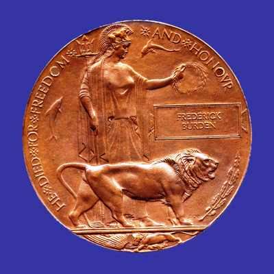 Commemorative Death PennyWe will never know the exact circumstances of his death; whether it came swift, or in slow agony, whether he died alone under the bullet of a sniper or with others of his Company, victims of a shell. But of one thing we can be confident, since he was posthumously award the Death Penny, inscribed with his name and the words, ‘He Died For Freedom And Honour’, that he died with courage. This small coin came with a note saying "I join with my grateful people in sending you this memorial of a brave life given for others in the Great War. George R J." Along with all those other men commemorated at the Arras Memorial, and many others in France, Europe, and the whole world, he died fighting in defence of a better future for his family. That other men, and it is always men, caused the conflict that resulted in his death is a matter of great shame for humankind. Whether such violent conflict will ever be eradicated from our race is uncertain. But those of us who remain, those of us provided with a promise of long life and freedom by those who to kept us free, must strive to ensure we make full use of our opportunities. We must live our lives in celebration of the bravery of such men as Frederick Burden, the grandfather I never knew.
