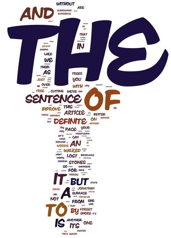 The 'the' can, and oftendoes, convey an idea of importance on the subject it describes.But, what of thoseoccasions when writers use it to describe the ordinary? 'Jonathan walked thelength of the lake shore, skimming the flat stones over its surface.' Here wehave a sentence with three instances of 'the' in just 15 words: 20% of thesentence consists of the definite article! Can we improve it without alteringthe sense?