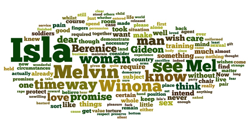 Wordle has, again, provided a useful graphic to show which words are used most frequently. And I've decided to do a Wordle image for each of the chapters. Currently I'm on chap 29, but I've used the last complete chapter, 28, to illustrate this post.