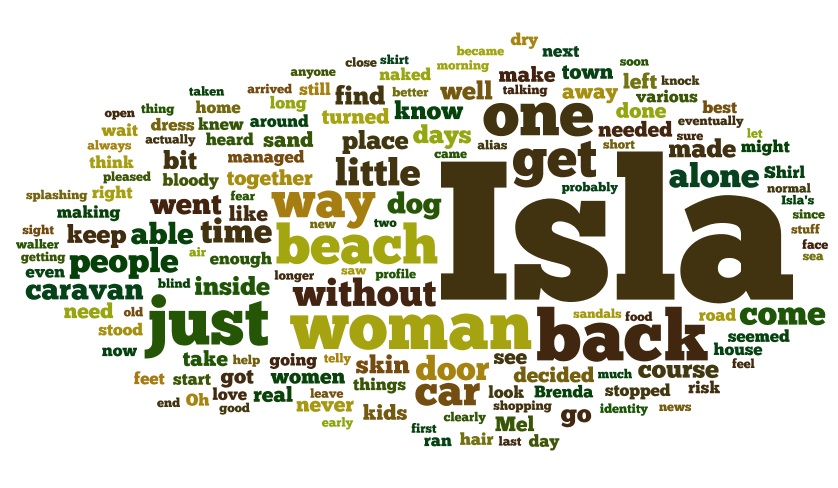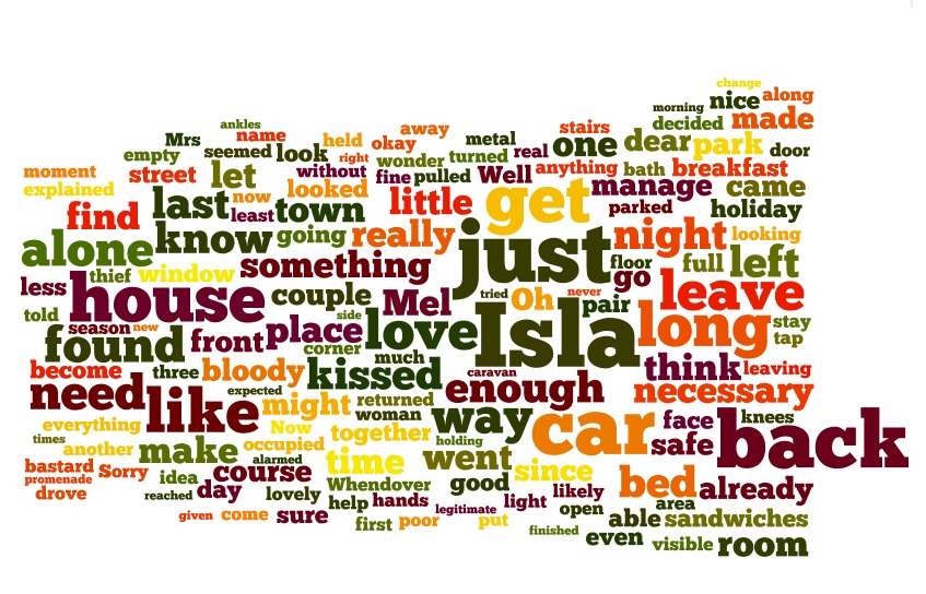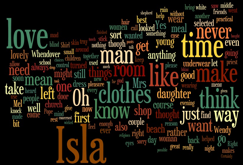 The Wordle picture is from Chapter 22. Isla's name is very prominent, so I'll have to check that when I do the editing. Of course, the chapter is very much about her and Mel's relationship to her, so not surprising her name comes up a lot.