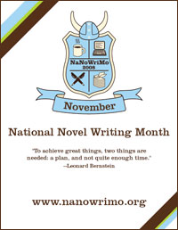 Had to add a couple of characters to my spreadsheet timeline, but they were already prepared and just waiting in the wings for me to bring them on stage. So much about this seems to depend on the preparation before the NaNoWriMo challenge starts.