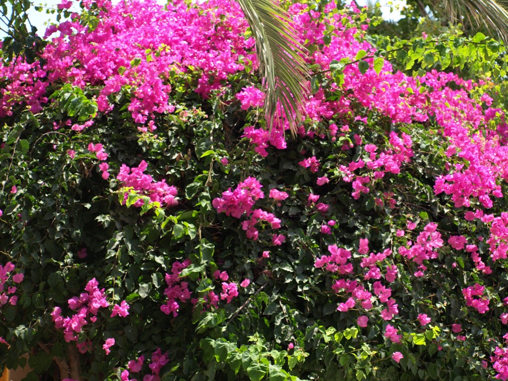 Picture: Flowers in Palm Court, Sissi, Crete. Far from Bacchanalian.