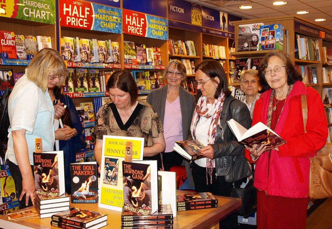 Not strictly speaking accurate, as I've made quite a few comments on various groups I belong to. But no serious writing done. A break after yesterday's marathon. Tomorrow, I must start to prepare the blog posts for the time I'll be away from the computer, so that my readers and visitors have something new to read.Today, I went to a book launch for a writer friend of mine. Penny Grubb was signing copies of her third crime thriller; The Jawbone Gang, and gathered a good deal of interest in the Beverley branch of WH Smiths, about 12 miles from where I live.