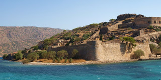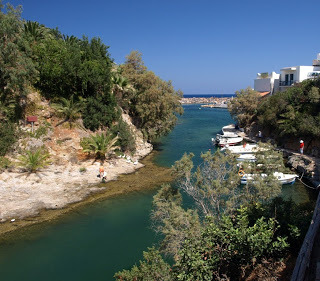 'The ornate writing desk, which she bought him as a reward for his success in having his novel published, was inlaid with mahogany, ebony and nacre, which shone with the soft lustre of the sea and inspired him to write more about the sailors she so loved.'The picture is of the Harbour at Sissi, Crete.
