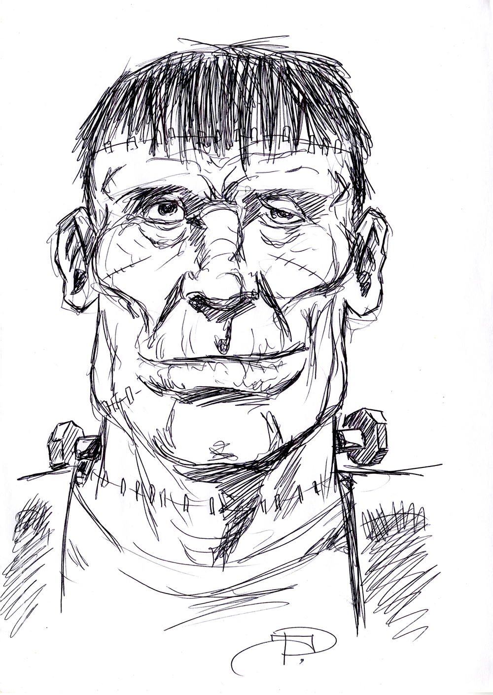 So with that in mind I thought instead of my usual sketch for Halloween, as it’s a short Halloween week this year, I would publish a sketch over the next three days, beginning with this one in biro of Frankenstein’s Monster.
