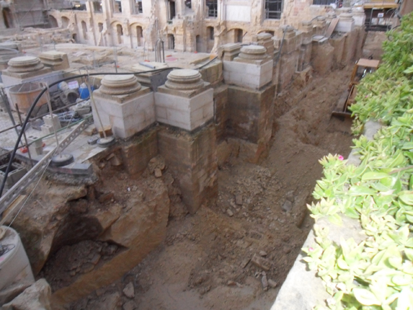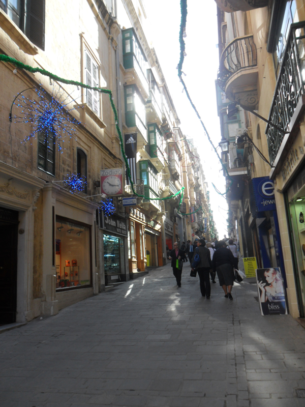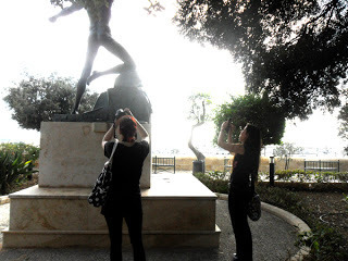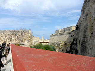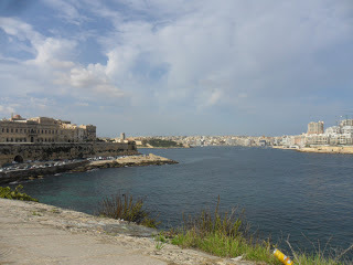 Outside the sun shone in an almost cloudless sky, so I shut my eyes hiding them behind my sunglasses. We sat outside in the shade for a while and then moved across the road to what would once have been a defence wall beyond which lay an inlet from the sea. On either side of this was the new and old architecture of Valletta.