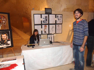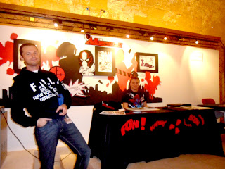 I decided to leave the putting up of the roller banner until all of the convention materials were being erected, as it would take seconds to put up. We went for some late lunch early dinner and I enjoyed one of the venue's cafe's Maltese style pizzas and a glass of Cisk – well it was a day off of course. It was really relaxing, except for the thoughts of the books and I could see that this year Mike had lots on his mind to think about – lots to organise. The day passed quickly and was an absolutely marvellous change for me after the year's madness that had seen me producing the graphic novel.